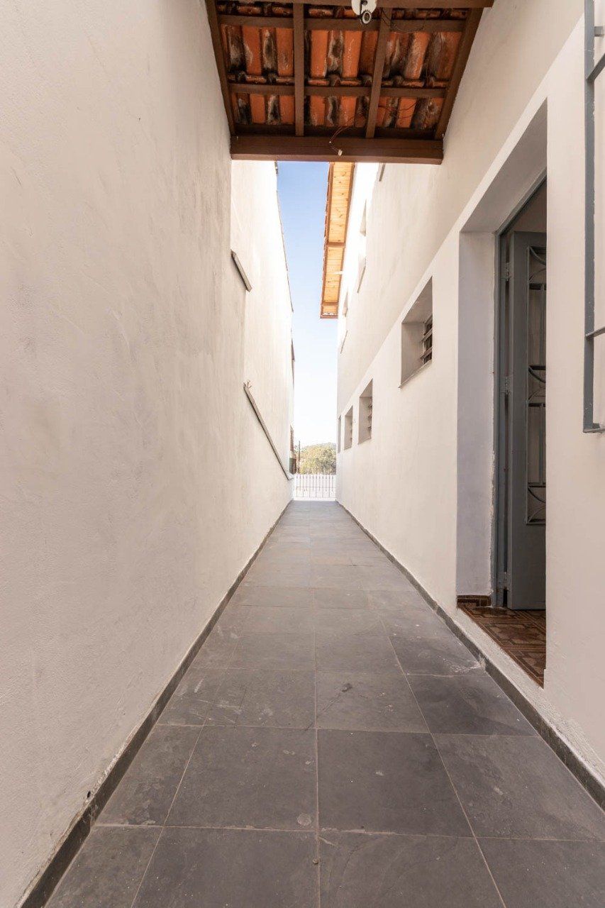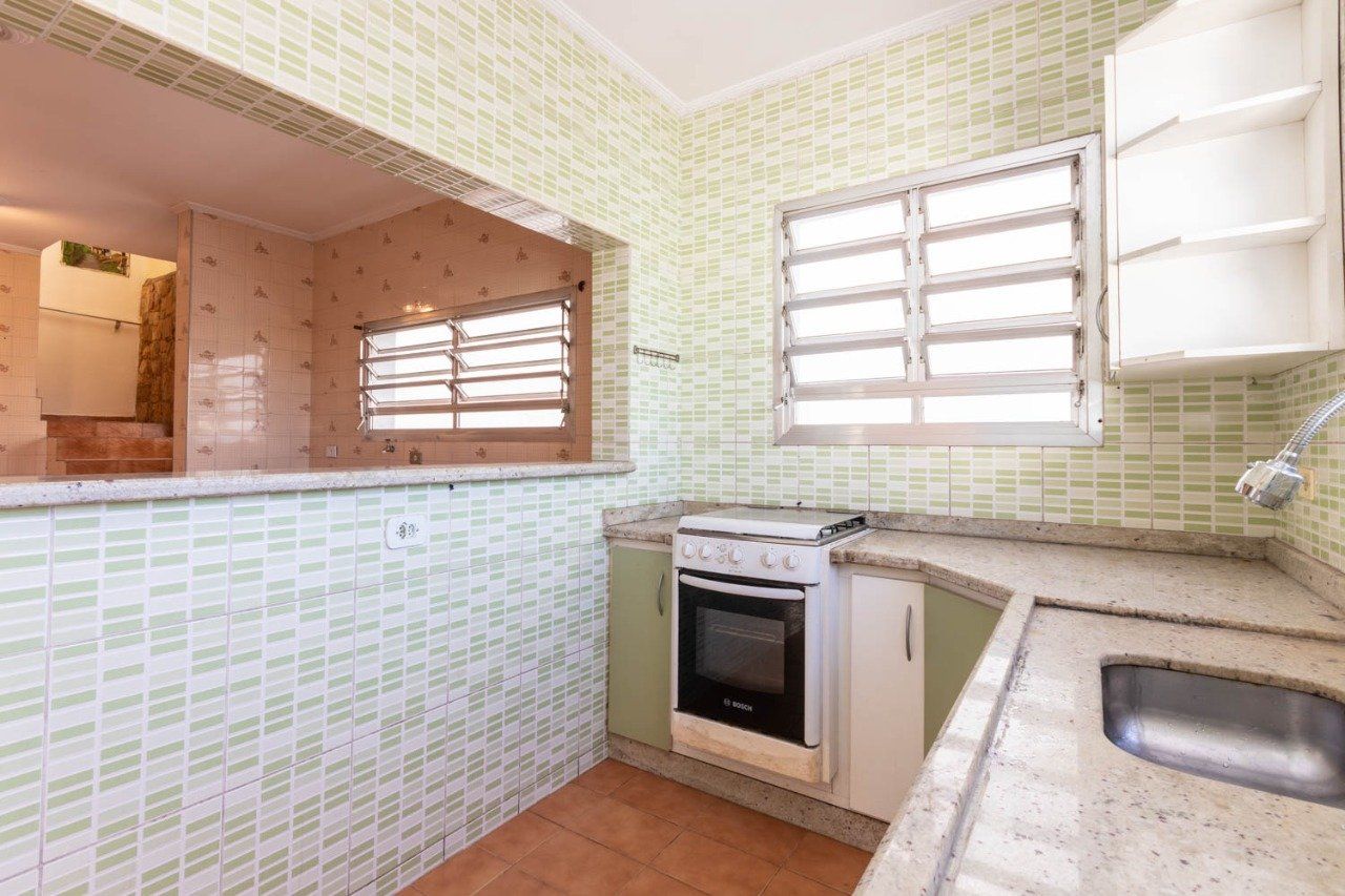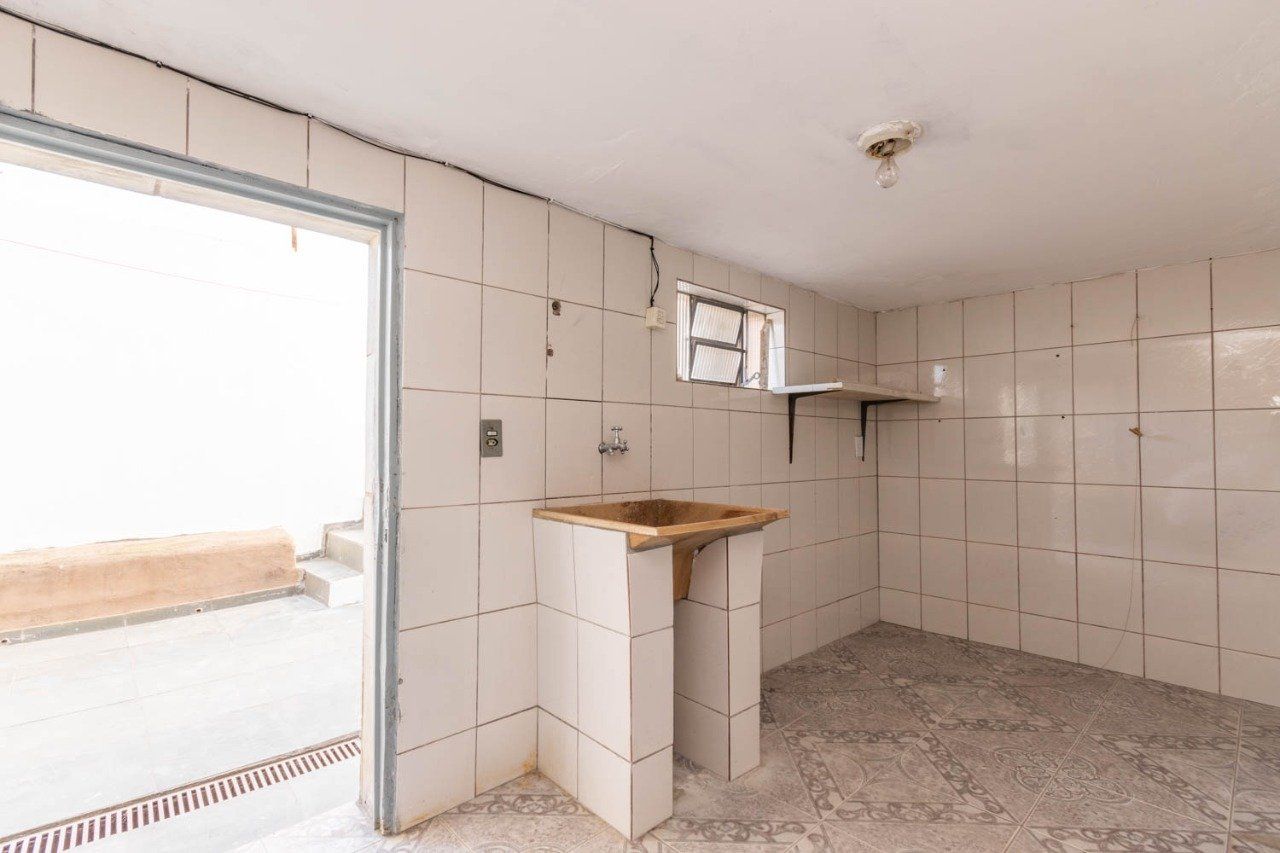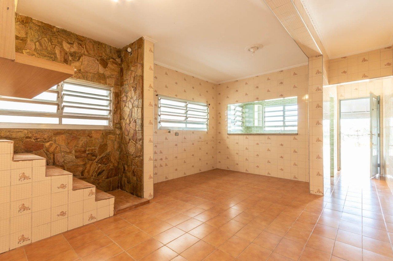 Parte inferior com sala, cozinha, copa estilo americana e banheiro. no quintal com lavanderia e canil. Superior com 3 quartos e 1 banheiro.