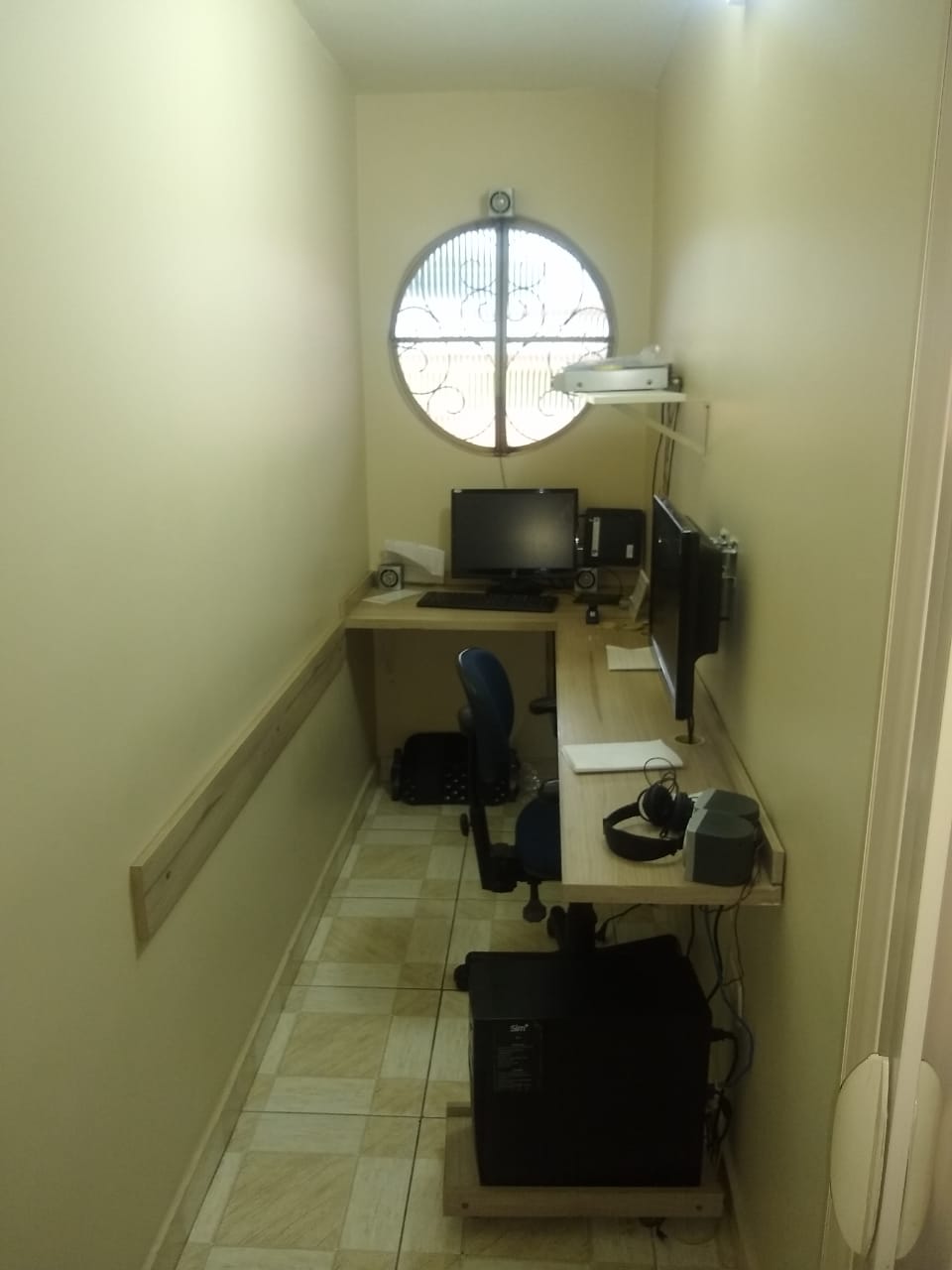 Casa com cozinha americana, sala e quarto e na parte de cima com quarto, sala, cozinha e banheiro mais um espaço para escritório.